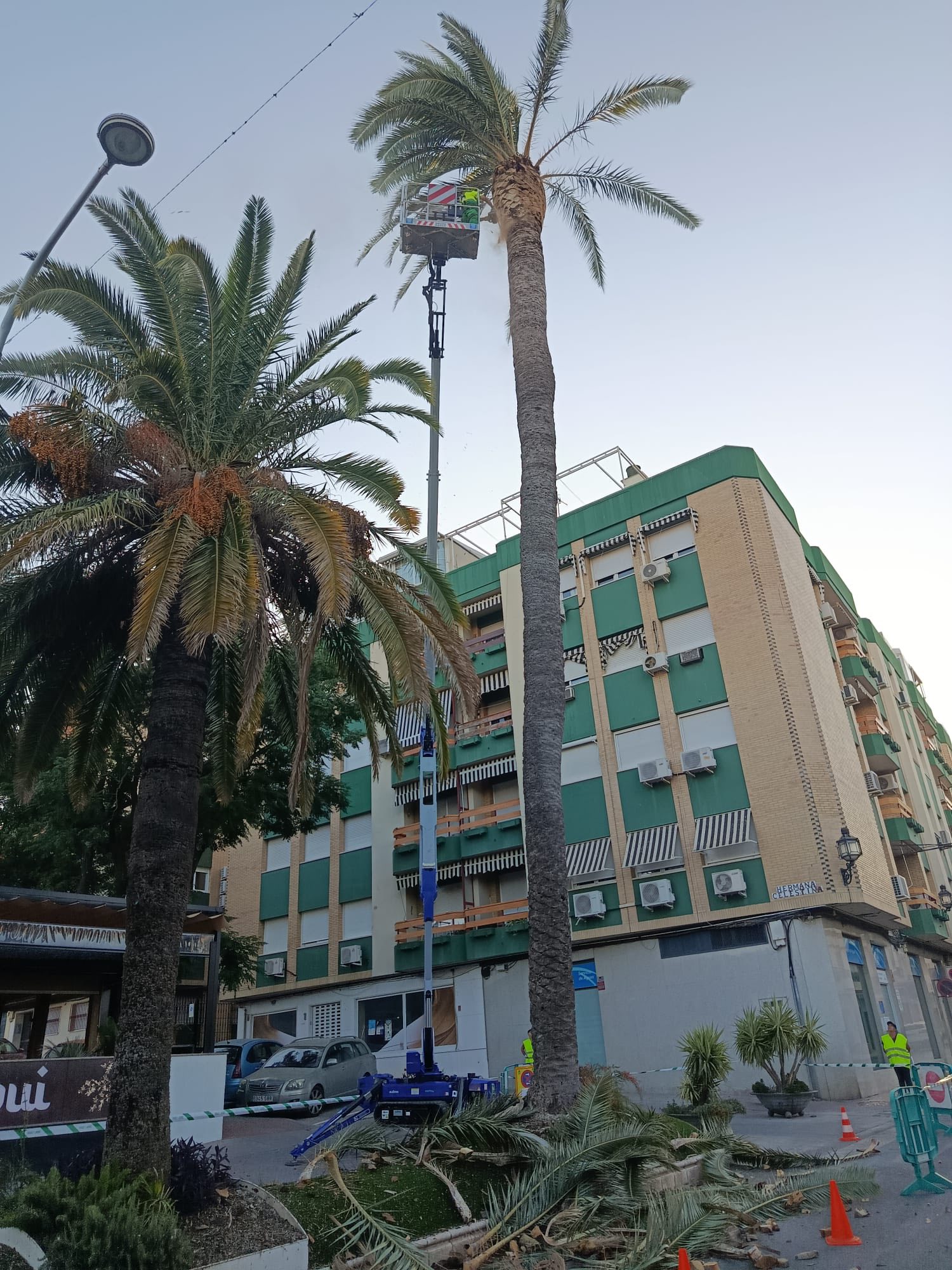 Comienzan los trabajos de poda de palmeras y ficus, en el paseo de la Alameda, con vistas a la Feria de septiembre