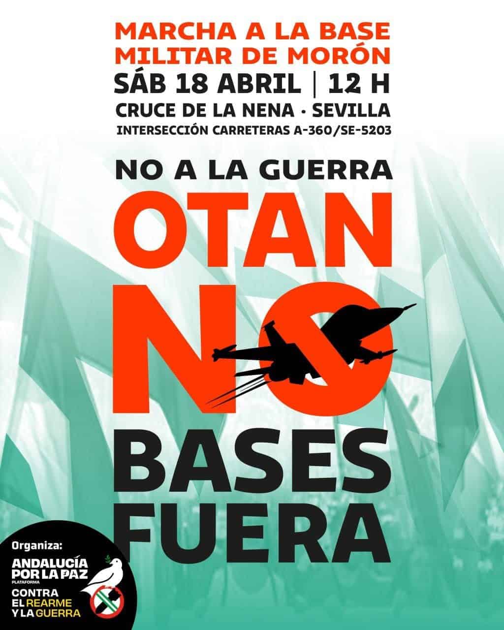 La Plataforma Andaluciía por la Paz, Contra el Rearme y la Guerra anuncia la celebración de la Marcha a la base militar de Morón, apropiada por los EEUU en una cesión intolerable de soberanía del dictadror Franco en 1953 y tolerada por todos los sucesivos gobiernos de nuestro país.