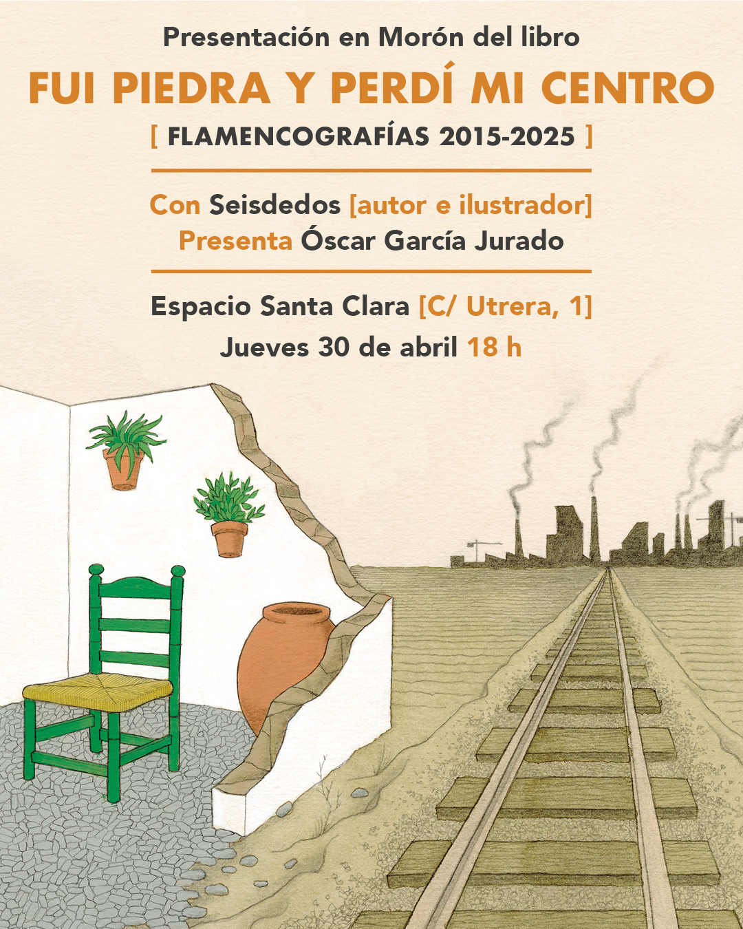 La Tertulia Cultural Flamenca El Gallo informa de la presentación del libro Fui piedra y perdí mi centro que se llevará a cabo este jueves, 30 de abril,una obra que reúne el proyecto Flamencografías (2015-2025) del ilustrador y ensayista Álvaro García, conocido artísticamente como Seisdedos.