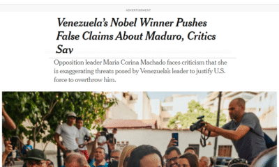 The New York Times revela que la premio Nobel María Corina Machado mintió a Trump diciéndole que Maduro era el líder de los carteles de droga...